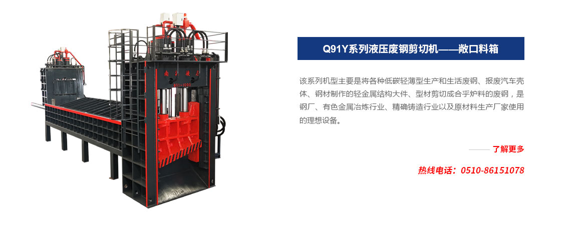 本公司是一個具有設計制造液壓機械多年歷史的專業生產企業,公司技術力量雄厚,專業生產Q43系列金屬剪切機、Y81系列液壓金屬打包機、Y82系列非金屬打包機、Y83系列金屬屑餅機、Q91系列重型液壓剪切機、廢鋼破碎線、撕碎機及其...